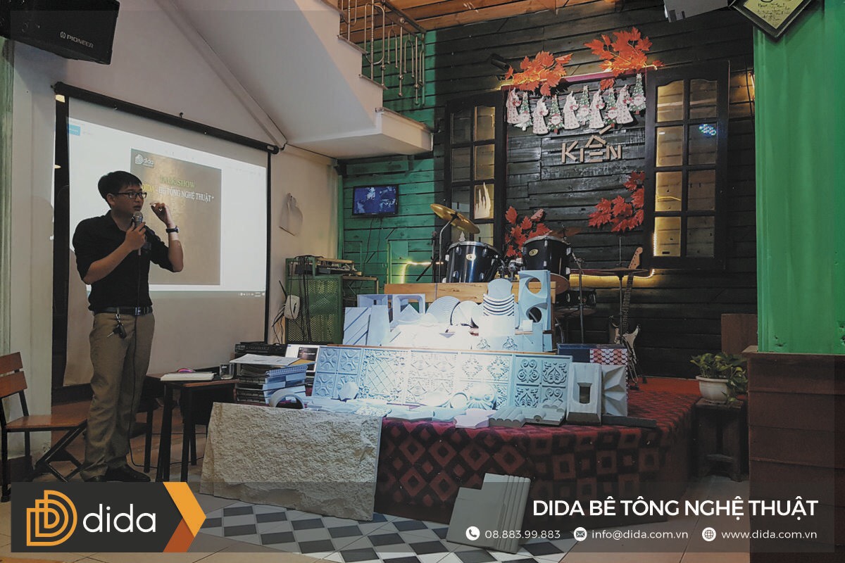 Tại chương trình này, ngoài các sản phẩm 'Bê tông nghệ thuật' đã được biết đến, công ty Dida giới thiệu đến quý khách hàng dòng sản phẩm 'Đá siêu nhẹ' ( dòng nhập khẩu ). 'Đá siêu nhẹ nhập khẩu' là một sản phẩm đánh dấu sự ra đời của thương hiệu Dida-store: Cung cấp dịch vụ hậu cần kiến trúc. Dida-store mang đến cho quý khách hàng nhiều sự lựa chọn chất liệu và mẫu mã hơn nữa, phục vụ nhu cầu sáng tạo của các nhà thiết kế.